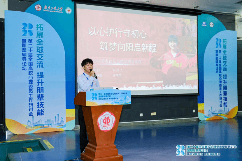 从校园心理服务的“实践者”到全国论坛的“参与者”,罗鸿洋始终以青春热忱践行心理育人的责任。此次当选既是荣誉,更是新的起点。未来,他将以论坛为纽带,积极学习全国高校心理工作先进经验,结合我校实际持续创新朋辈辅导模式,带动更多同学参与心理健康服务。同时我校学生潜能发展中心也将依托更多的专业平台,联动校内心理健康的各类资源,带动更多同学参与心理健康服务,进一步夯实“五心同筑、双元互动、五育并举”的心理育人工程,积极贡献培华青春力量。