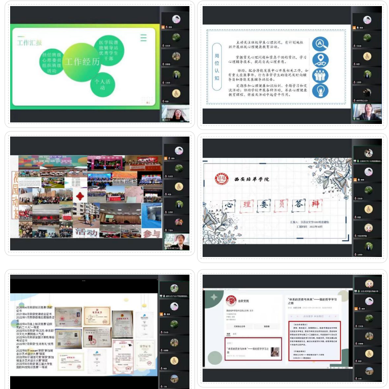 为充分发挥大学生心理委员朋辈辅导、同伴教育中的重要作用,推动班级心理健康文化的发展,培养心理委员的责任与服务意识,在心理委员队伍中树立先进典型,传播积极的班级心理健康教育工作理念,10月19日上午10点,因疫情原因,西安培华学院组织开展了2022学年校园“十佳心理委员”先进个人线上评选会议。