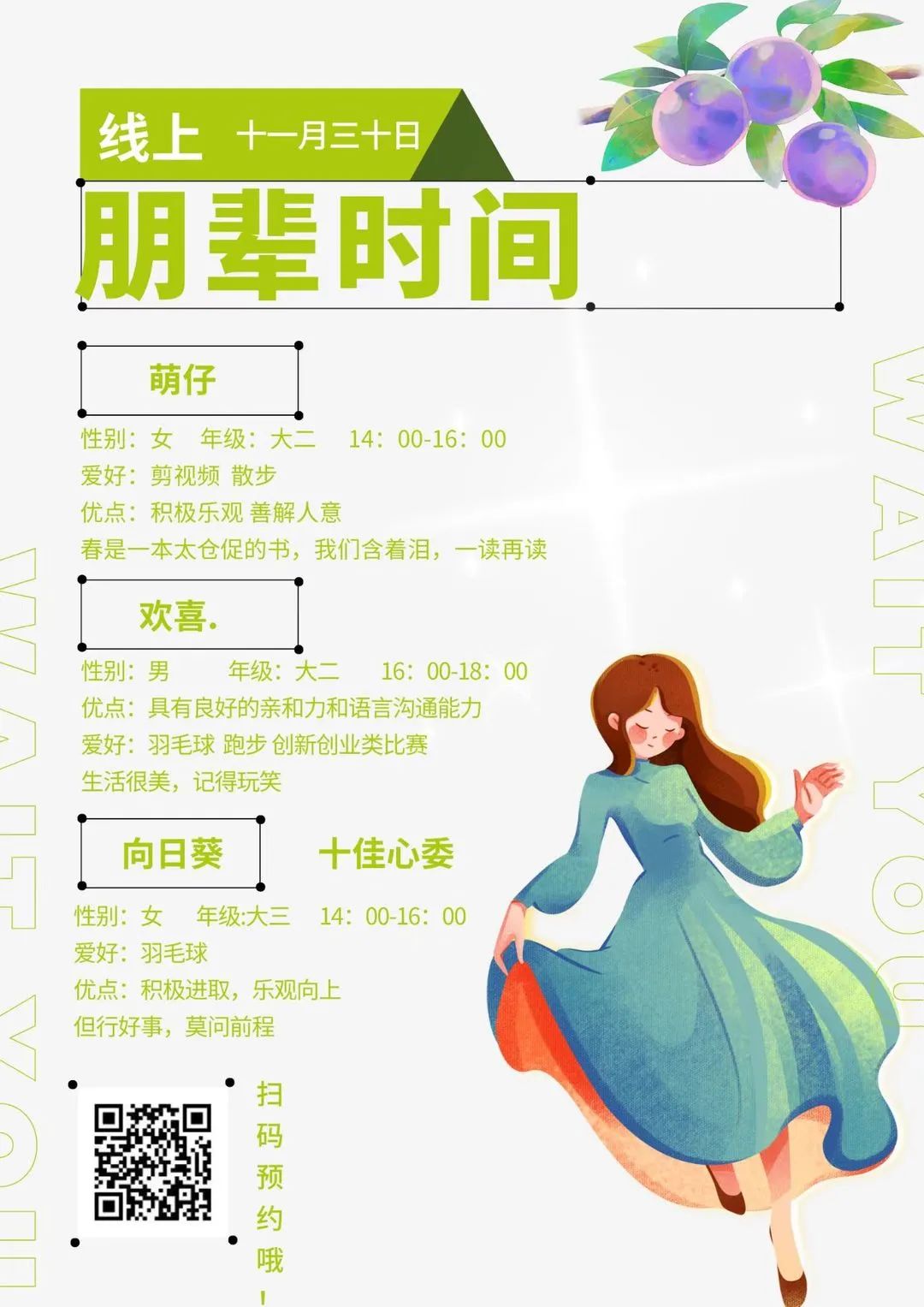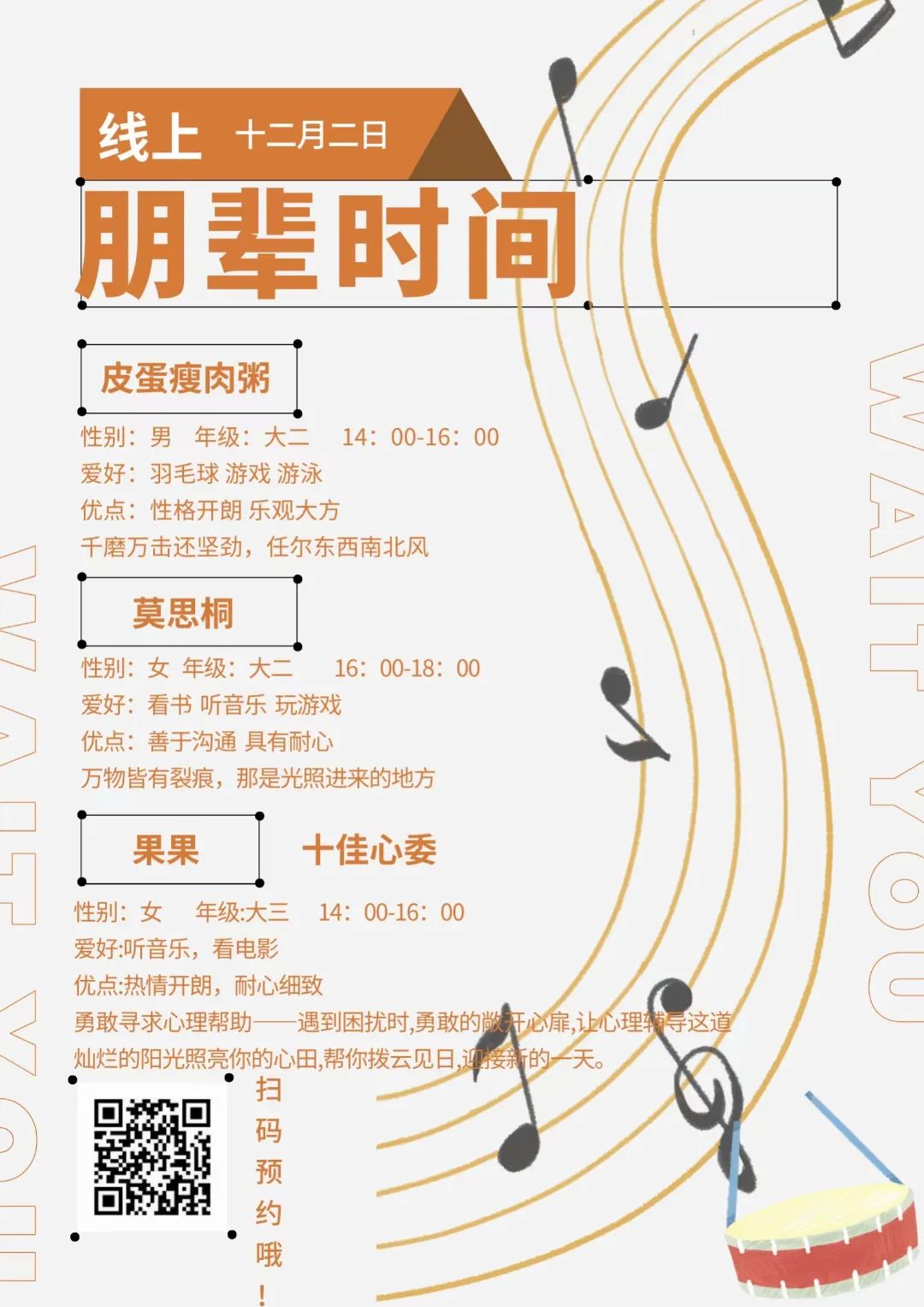 朋辈心理咨询员11月30日、12月2日值班安排如下: