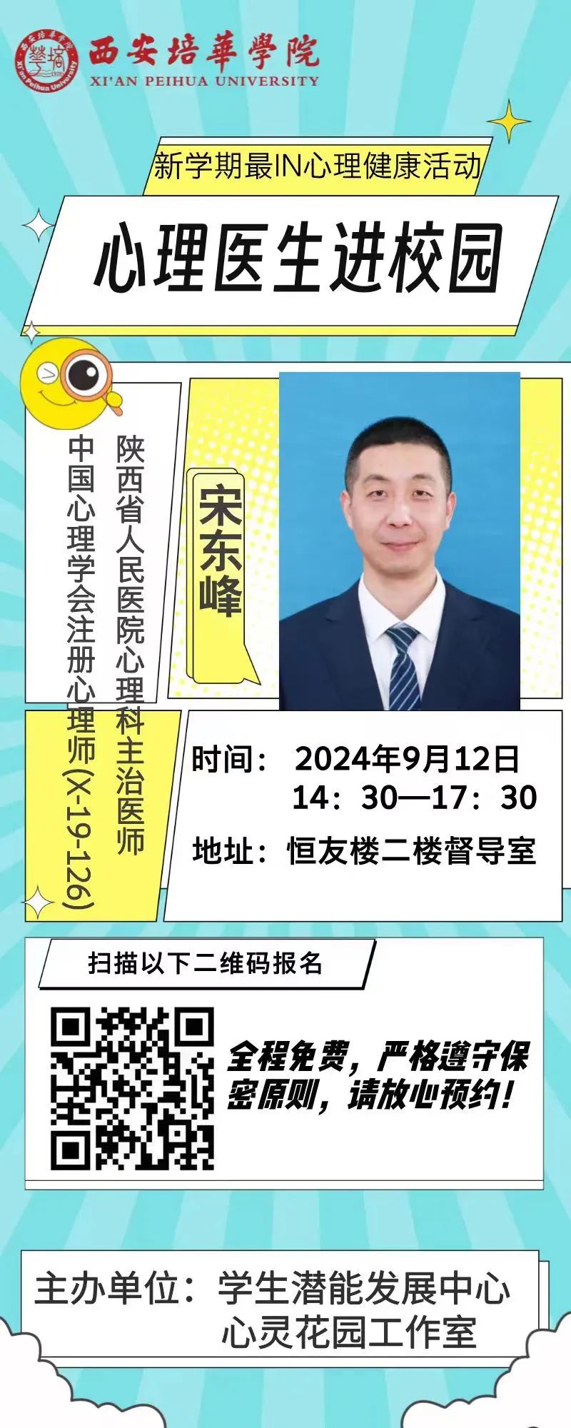 同学们无需出校,就能在活动现场与宋老师进行面对面的交流。宋老师经验丰富,专业知识深厚,他会耐心倾听同学们的烦恼与困惑,为大家提供专业的心理诊断和贴心的建议。而且活动全程免费,严格保密,大家可以放心参与