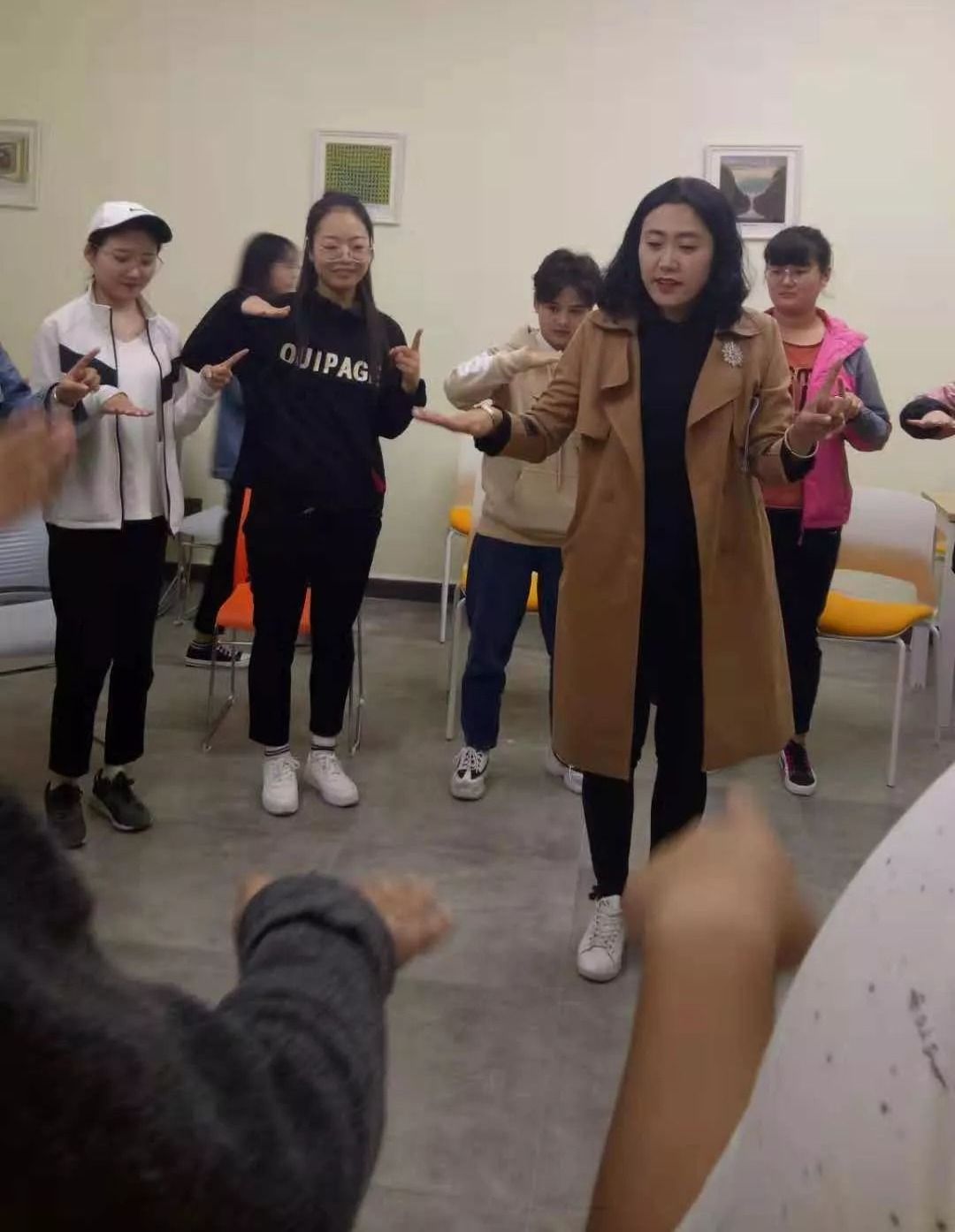 活动刚开始,韩赟老师首先组织大家进行“抓乌龟”的练习来活跃气氛,同学们表现积极,反应良好。