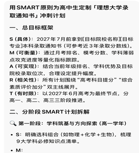 活动最后环节,成员使用特制SMART桌签卡,填写具体目标。借助人工智能AI软件,对计划进行重新规划。王老师强调:“目标就像航行的罗盘,而SMART原则能确保你在追逐梦想的路上不偏离方向,同时保持灵活调整的空间。”