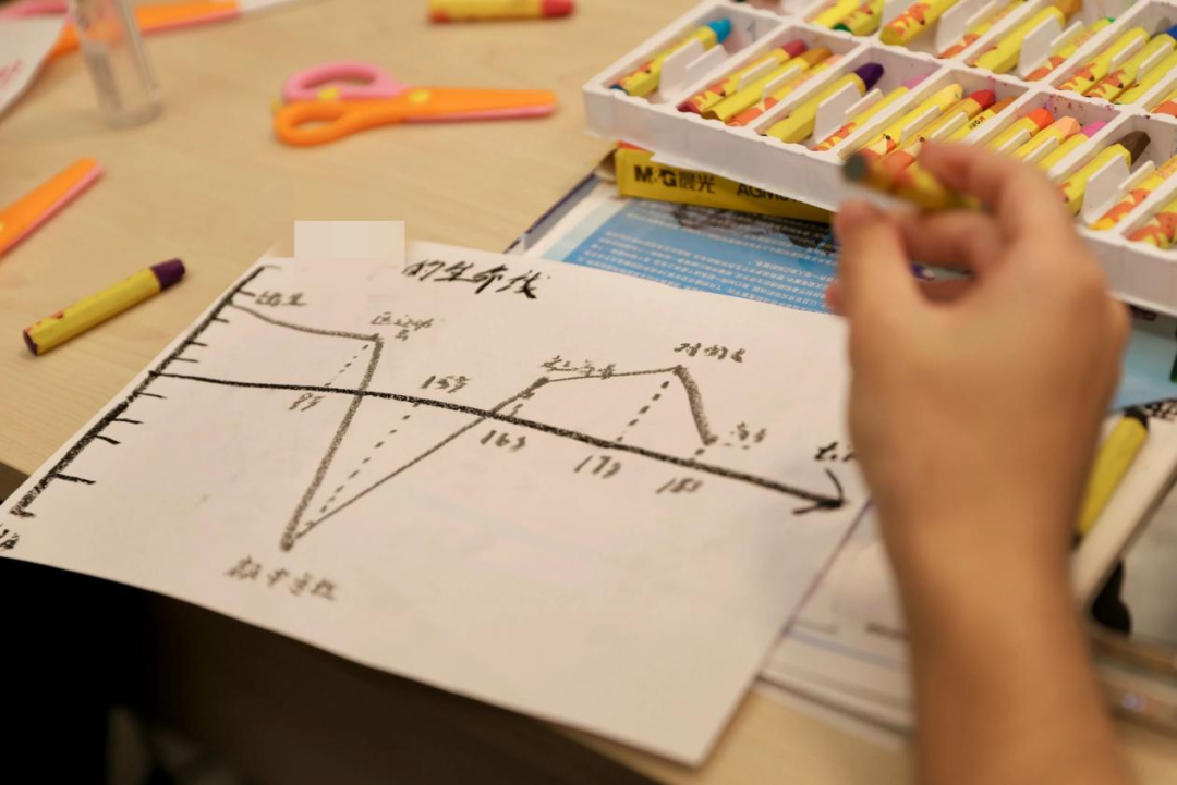 在“人生轨迹”创作环节中,参与者在自己专属的“人生坐标轴”上描绘出一条象征着自身成长与发展的曲线。这条曲线不仅呈现了他们过往的人生高低起伏,也寄托了他们对未来的期待与想象。