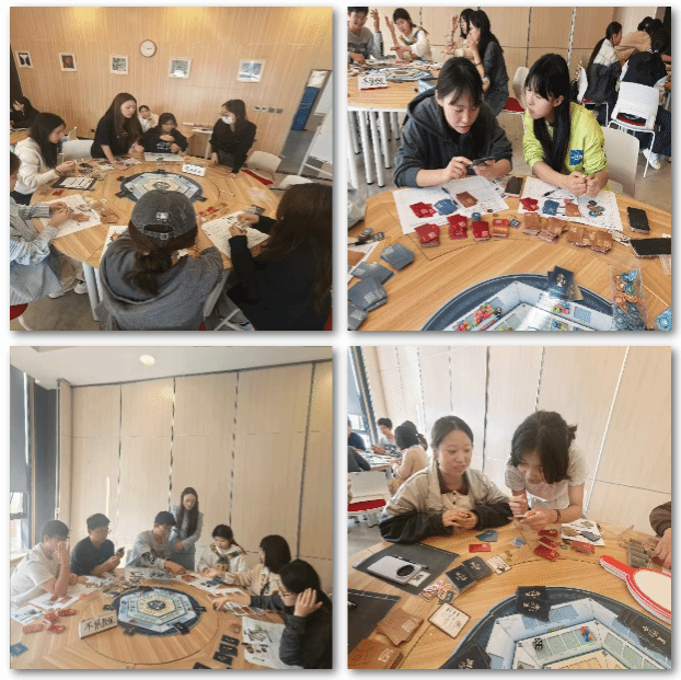 活动伊始,同学们按要求分组、自我介绍,起好组名之后便开始了此次穿越之旅。江老师介绍了沙盘中各个道具的使用方法,每位同学在选择自己的“修行角色”后沙盘体验正式开始。整个活动分为四个部分:初探学府、渐入佳境、深造精进和登峰造极。同学们根据江老师的讲解开始了一轮轮“策行令”的任务,有人果断执行,有人选择观望,每一步都像现实中的决策一样,牵动着“未来”的走向。每轮体验结束,江洁老师都会邀请同学们分享体验感受,让此次活动不仅是“玩”,更是“想”。