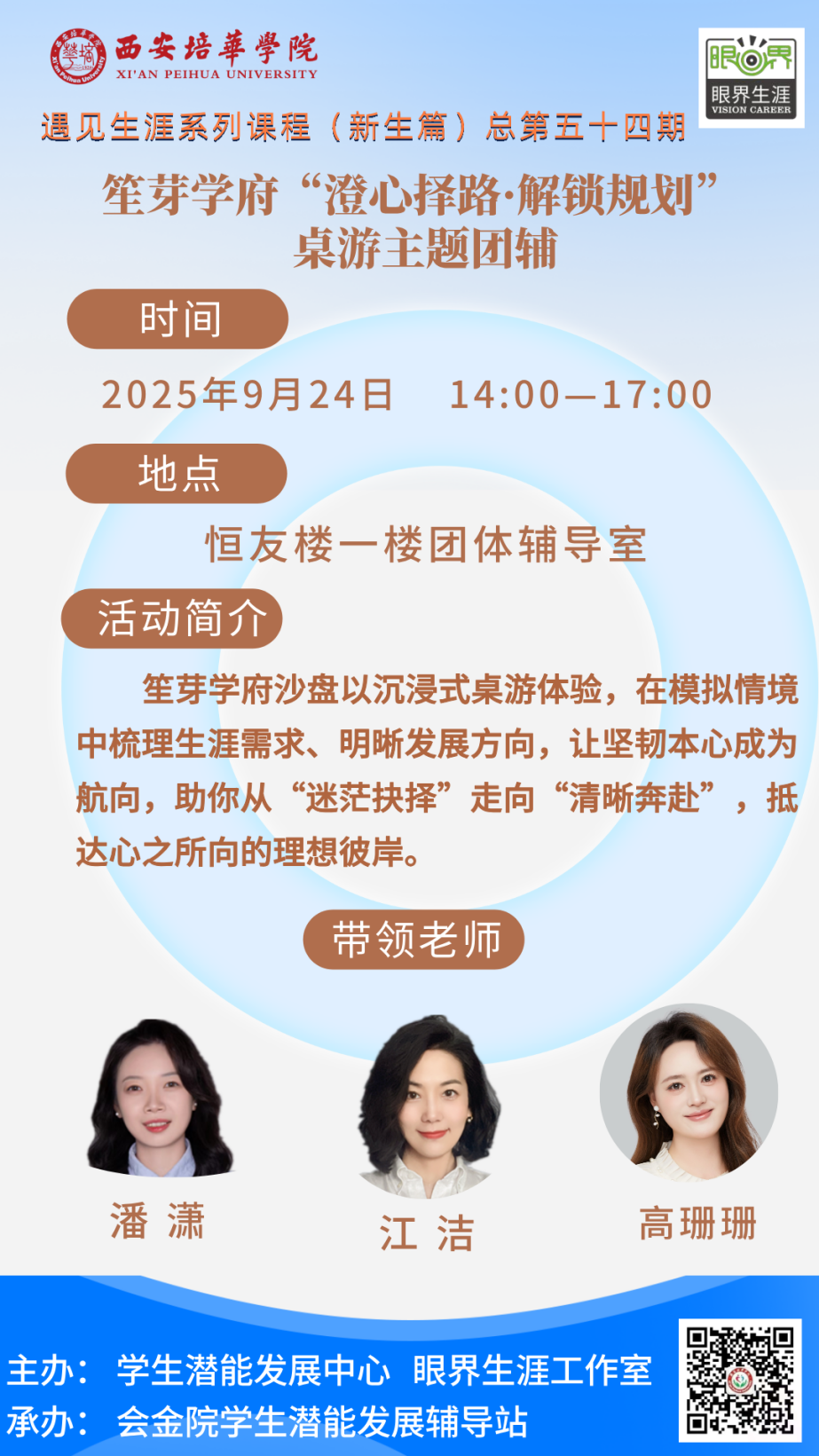 “修行”结束后江老师还送出修行锦囊:不断尝试,积极探索,尽早确定职业目标,有目标地规划学业和生活。积极进行职业生涯规划,不完美的行动胜过完美的等待。大学四年,就像这场沙盘之旅一一有选择,有挑战,有调整,更有收获。提前规划是起点,在行动中不断调整,让你在大学与职场的道路上走得更稳、更远。