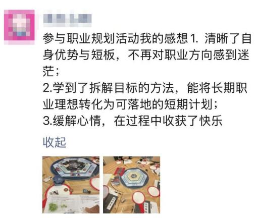 王旭老师和李月老师引导同学们回顾、分享在沙盘模拟中的决策,思考决策时的感受、回顾决策后的结果、总结决策中的经验、调整再决策的规划。同学们畅所欲言,交流模拟大学四年中的得失感悟,反思自己的决策思路,并初步勾勒出符合自身兴趣与优势的生涯规划。在与现场同学分享感受之余,一些同学将活动的感受分享在朋友圈,表示“无形中规划了大学四年”。