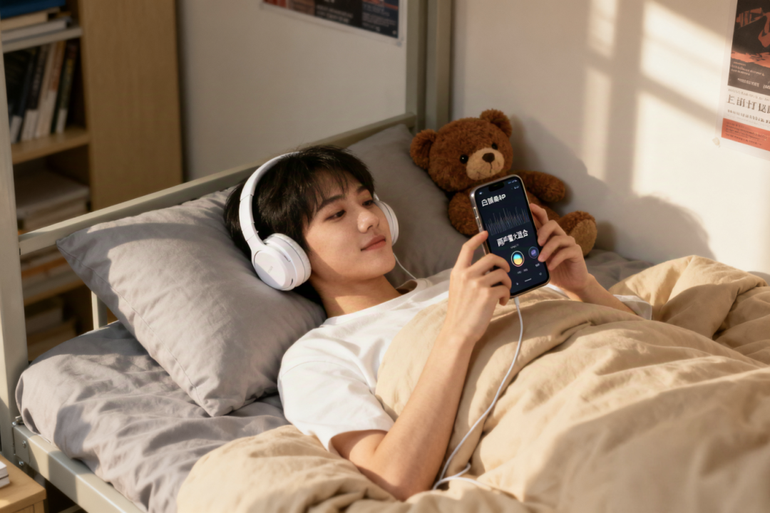 ·白噪音APP:雨声+篝火声+咖啡厅背景音,营造“窝在安全角落”的沉浸感