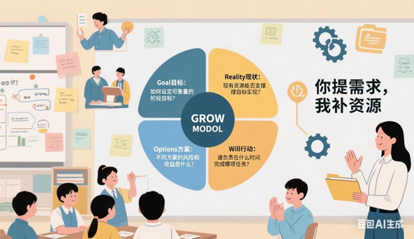 第一步,用Grow模型“引导学生规划可行性的成长目标: