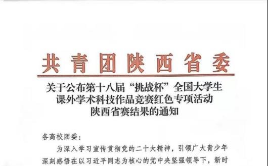 我校在第十八届“挑战杯”全国大学生课外学术科技作品竞赛红色专项活动陕西省赛中喜获佳绩