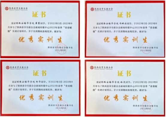 近日,共青团陕西省委、陕西省学生联合会发布了《2023年春季“青春赋能”计划实训证明》的通知,我校9位同学顺利完成陕西学联新媒体运营相关工作,获得实习证明。其中,徐灵、郑华、黄菁、冯妍乐4位同学,被评为“优秀实训生”。望受表彰的个人珍惜荣誉,再接再厉取得更好的成绩,激励更多培华学子以先进典型为榜样,努力提升专业素养,讲好培华故事,发好培华声音