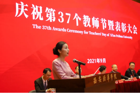 9月9日下午,西安培华学院在维之图书馆报告厅举行2021年庆祝教师节暨表彰大会。全体校级领导,各院(部)、中心负责人、教师代表、辅导员代表近300人参加了会议。