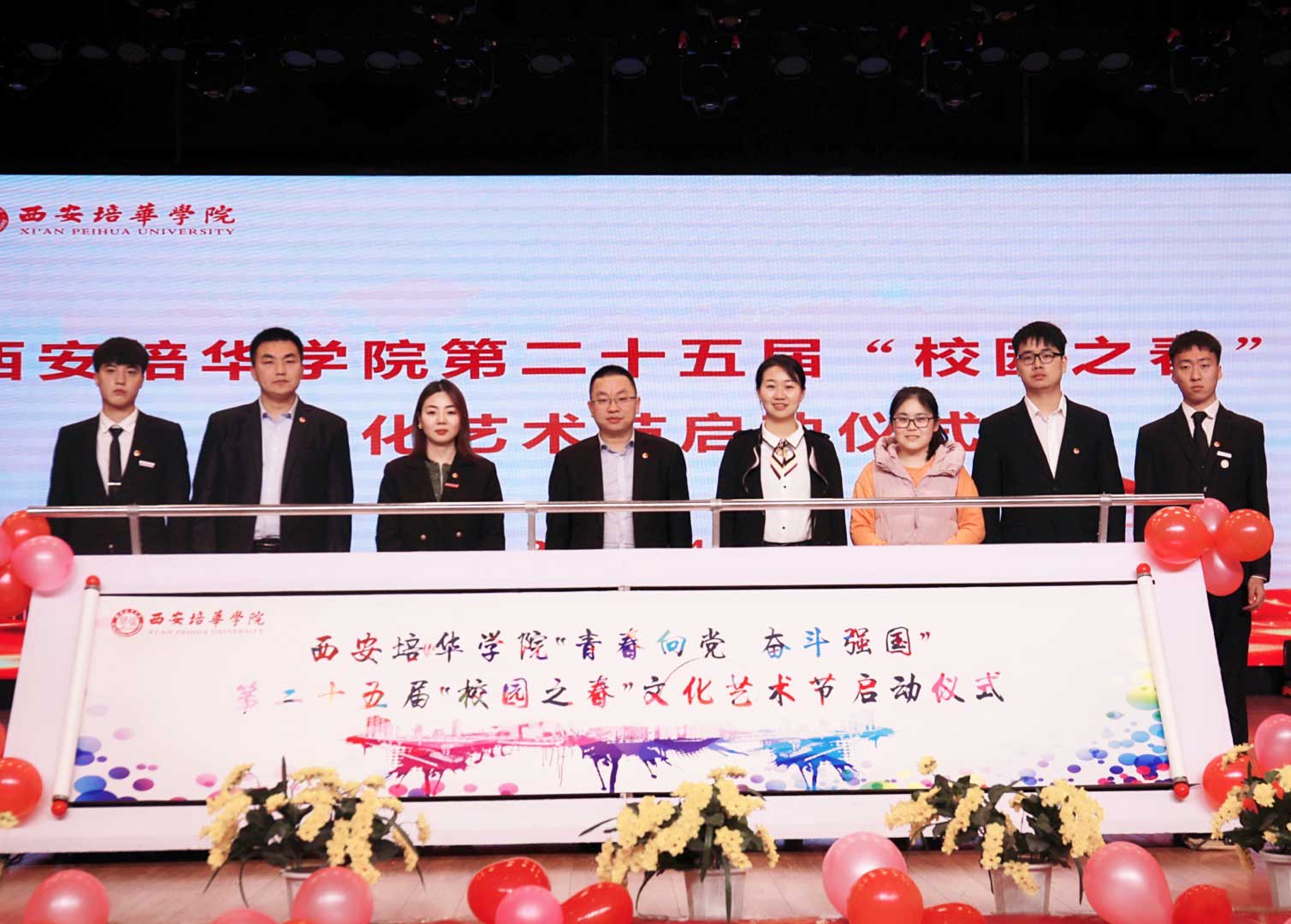 为深入贯彻落实党的十九届五中全会精神,推进大学生社会主义核心价值观教育,增强培华青年的责任感和使命感,充分发挥校园文化的育人功能,搭建具有时代特色和青年学生特点的校园文化活动平台,努力营造健康向上的校园文化氛围,促进大学生德智体美劳全面发展,以良好的精神面貌迎接建党100周年。4月23日晚,西安培华学院“青春向党 奋斗强国” 第二十五届“校园之春”文化艺术节在培华大学生活动中心隆重举行。参加本次开幕仪式的嘉宾有校团委副书记屈先锋、校团委工作部部长董莹、社团团工委书记、校团委干事刘子阳、传媒学院团委书记王朋、智能科学与信息工程学院团委书记范思媛、医学院辅导员曹寰琦以及我校青年学子共计300余人。