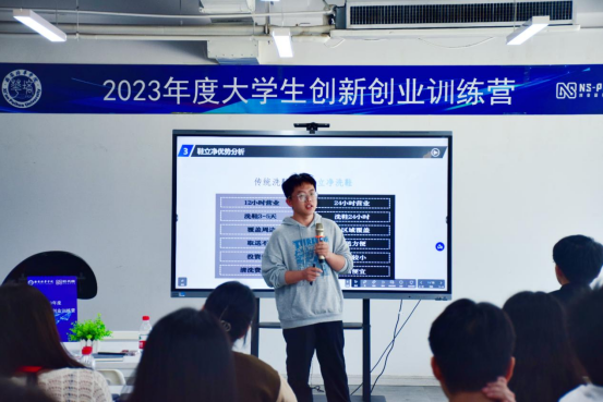 本次训练营围绕赛事解读、实战能力提升和项目路演技巧三方面进行培训。创客中心王旭东老师首先介绍了本届训练营联合“NS-PLAN”创业新星计划拟开展的各项培训,王大力、刘龙泉两位导师分别将互联网+创新创业大赛、挑战杯等赛事的赛制、商业模式设计、商业计划书撰写、路演答辩技巧等方面给同学们进行了详细的培训和指导。现场,传媒学院、智能科学与信息工程学院、会计与金融学院及体育学院带来了4个不同方向的项目路演,两位导师针对同学们的创业项目给予了点评和建议。