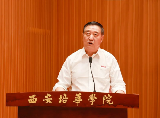 常务副校长胡俊生教授宣读《西安培华学院关于表彰2022-2023学年高水平教学成果及荣誉的通报》《西安培华学院关于表彰2022-2023学年“优秀学业导师”的通报》。