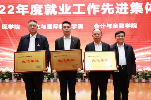 西安培华学院校长李映方为获得“2022年度就业工作先进集体”的学院颁奖