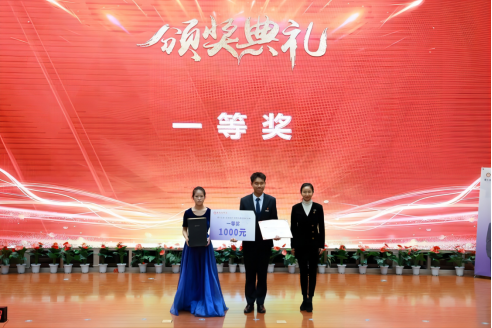 西安培华学院副校长、党委副书记姚文静为获得“一等奖”的选手颁奖