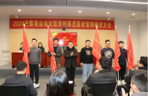 在中国甲辰龙年来临之际,2024巴黎奥运会女篮资格赛将于2月8日-11日在陕西西安隆重举行,1月30日,2024巴黎奥运会女篮资格赛誓师动员大会暨志愿服务工作培训会在陕西省体育馆举行。西安培华学院校团委董莹、人文与国际教育学院团委书记朱林鹏(带队老师)和16名学生志愿者参加了会议。