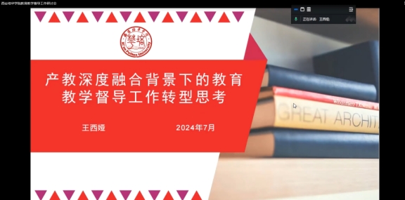 本次研讨会的主题是“深化产教融合,推动教育教学督导转型发展”。学校教育教学督导办公室主任王西娅作题为《产教深度融合背景下的教育教学督导工作转型思考》主题发言,来自质量管理部门和各学院的校院两级督导代表10人,围绕学校产教融合的“督”与“导”进行了热烈发言,提出了具体、可行的意见和建议。