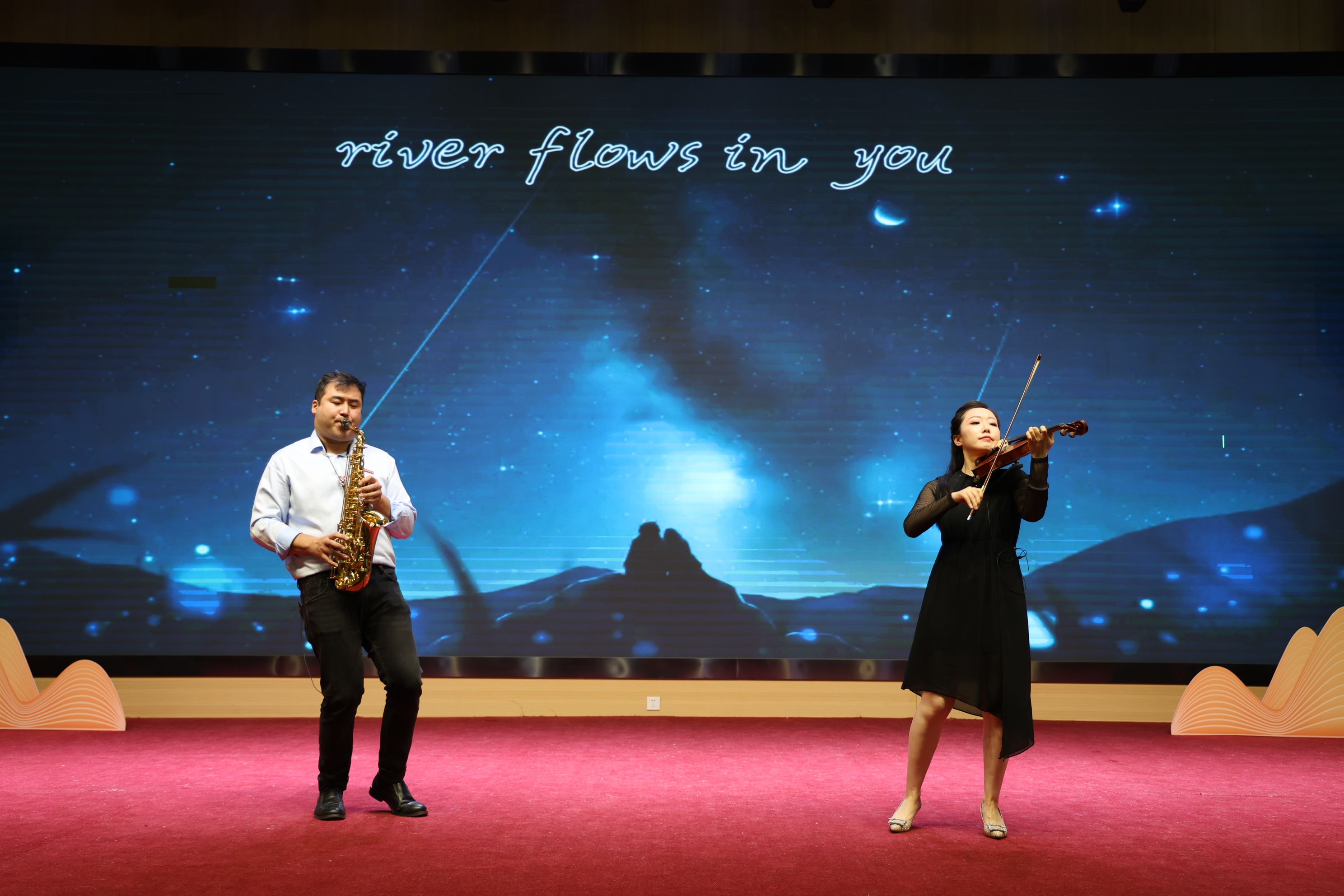 西安培华学院艺术教育中心的教师宋亚平、雷孟颖祎器乐演奏《你的心河》