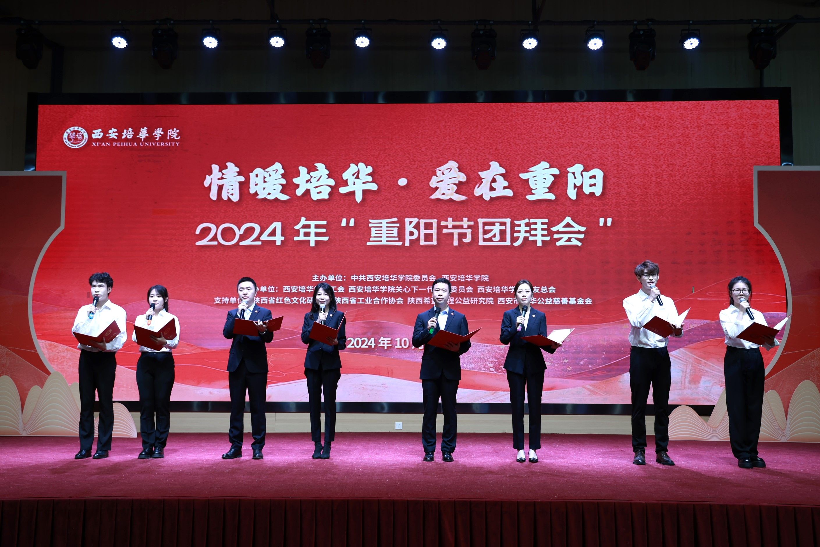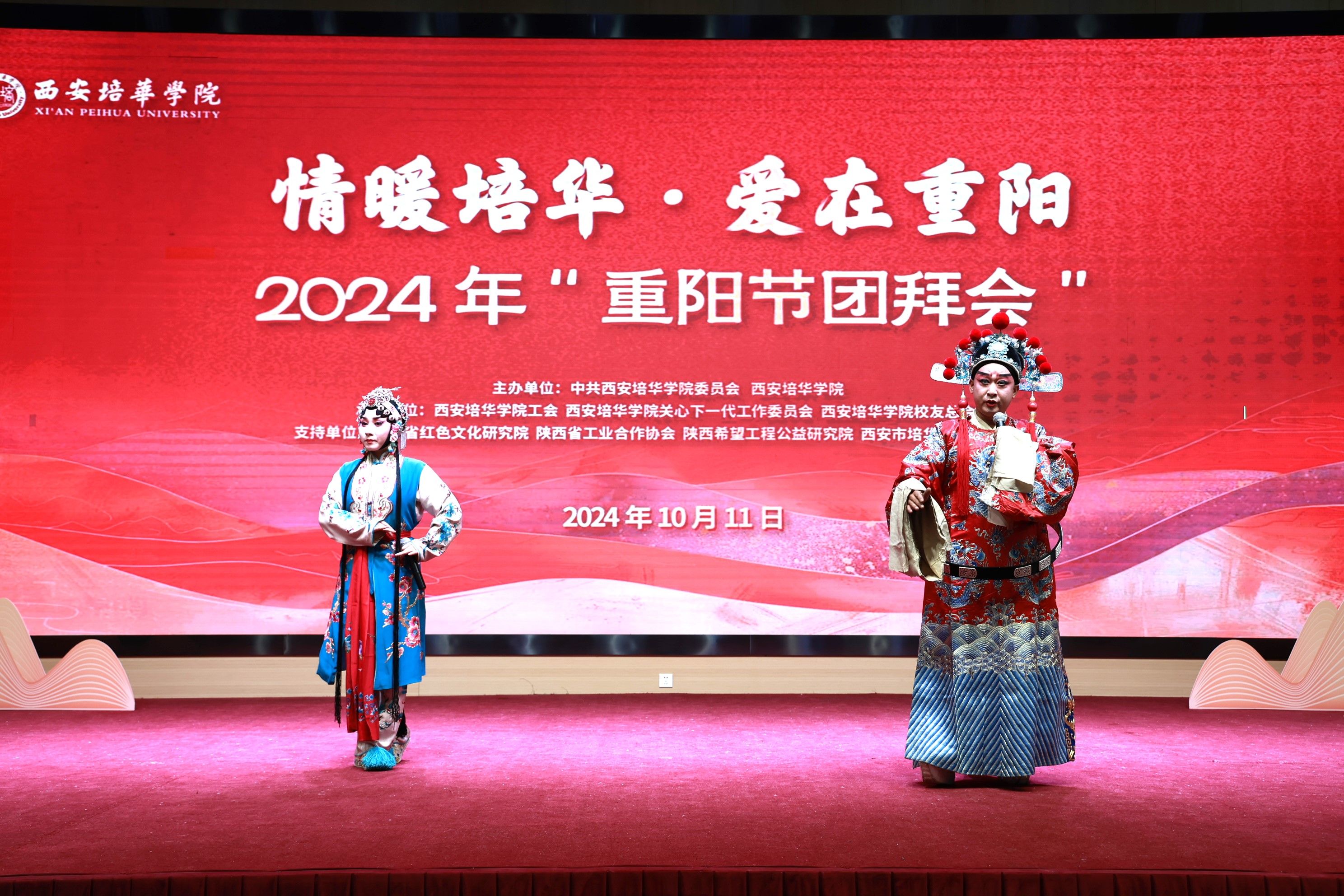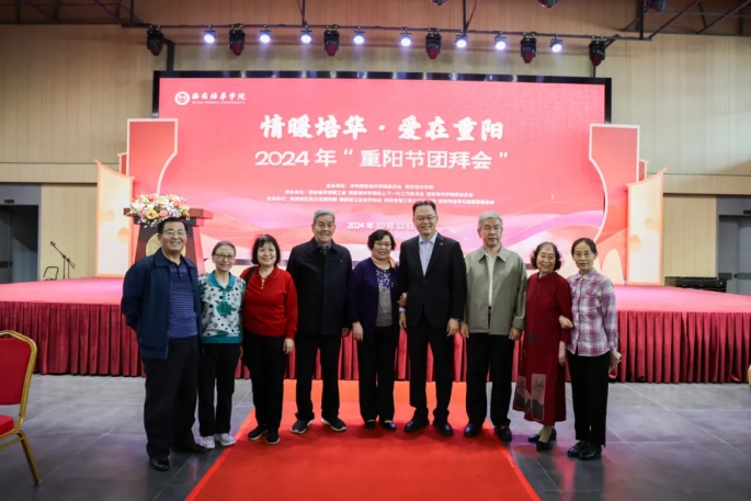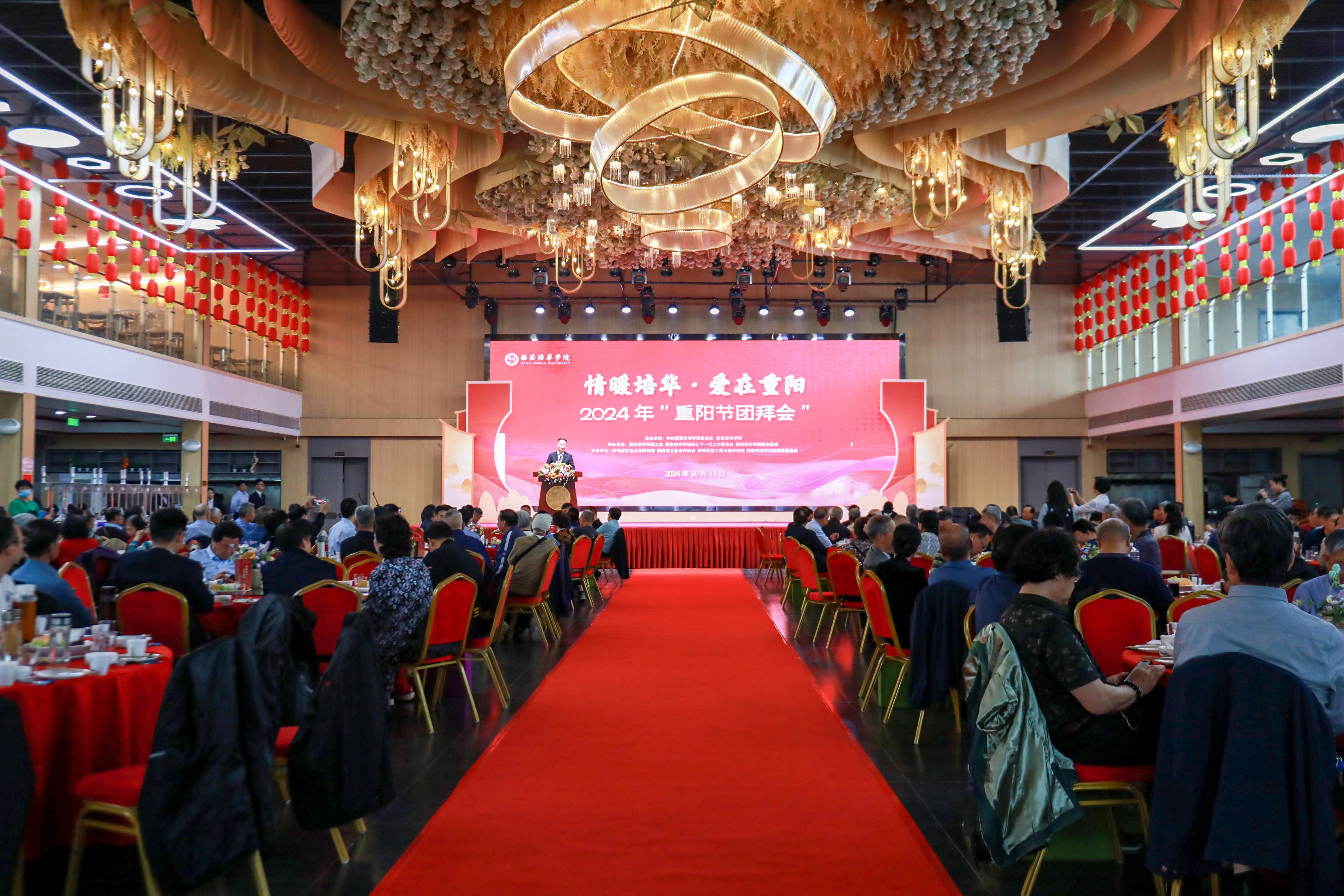 10月11日,沁园餐厅宴会厅高朋满座,洋溢着幸福的喜悦和欢乐。时值2024年重阳佳节,也适逢我国著名的民办教育家、培华女大创始人姜维之先生诞辰98周年,为缅怀姜维之先生的光辉业绩和人格风范,感恩各级领导、广大教职工和各届校友对教育事业和学校发展的卓越贡献,弘扬中华民族尊老敬老的传统美德。学校特邀陕西省原副省长姜信真等支持培华发展的离退休老领导、历届校友、“五老”代表以及学校在职60岁以上的教职员工等欢聚一堂,举办重阳节团拜会,追忆先贤,共话发展!