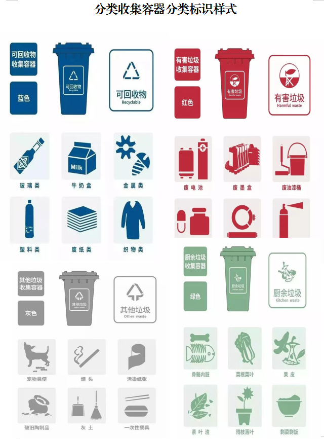 生活垃圾分类收集容器要从便利师生员工投放、便于实现垃圾分类实效的角度出发,按照统一的分类标准,考虑不同场所各类垃圾产生量、产生频率以及垃圾投放与收集点的差异,进行合理配置。