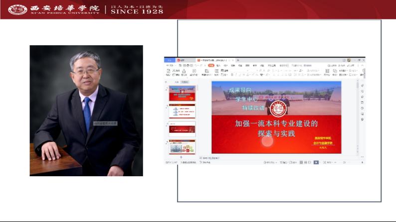 我校会计与金融学院院长赵选民教授分享了《加强一流会计本科专业建设的探索与实践》,赵院长从西安培华学院王牌专业——会计学专业的发展状况谈起,介绍了会计学始建于1928年商科,历经高级会计科、会计学本科、获得学士学位授权、省级特色专业、省级重点扶持专业、省级综合改革试点专业、省级精品课程、省级一流专业,最终成为国家级一流专业的发展历程,其中有艰辛有喜悦,有探索有成绩,今日的会计学专业要继续保持一流,适时转型,为培养数智时代复合型管理会计创新人才贡献培华方案。