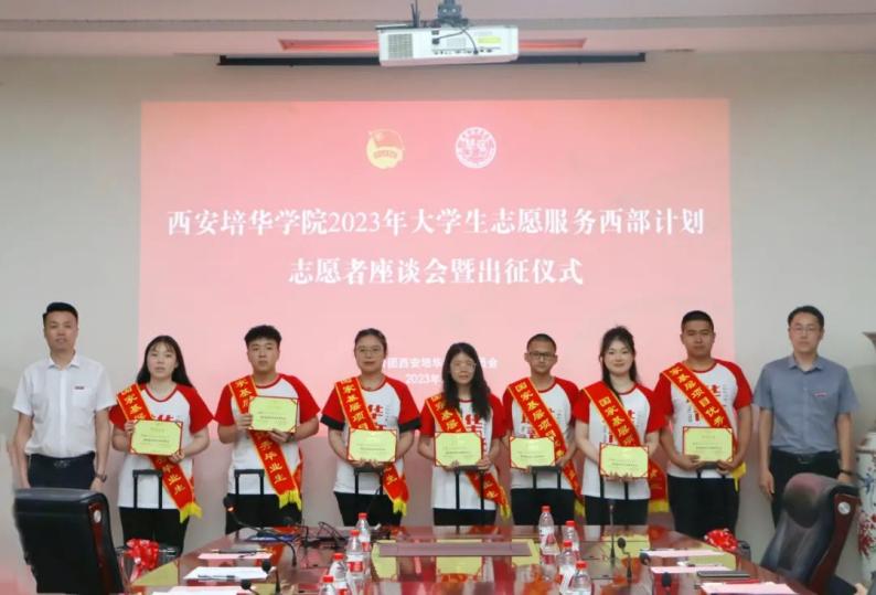 近日,西安培华学院2023年“大学生志愿服务西部计划”志愿者出征仪式在明德楼第一会议室举行。党委副书记、副校长姚文静,党委学工部、校团委、招生与就业指导中心、各有关二级学院领导及28名西部计划志愿者、学生代表参加了出征仪式。