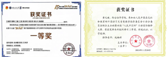 近三年,在大学生创新创业项目、国际中文教育教学技能大赛、全国大学生语言文字能力大赛、第六届生态文学艺术创作大赛、全国高师学生英语教师职业技能竞赛、“外研社国才杯”理解当代中国全国大学生外语能力大赛、中国国际大学生创新大赛、“挑战杯”全国大学生课外学术科技作品竞赛、“挑战杯”中国大学生创业计划大赛、中华经典诵写讲大赛等赛事中屡获佳绩。