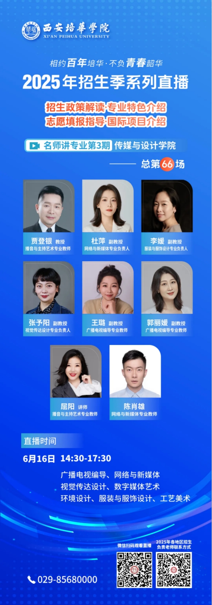 请各位高考考生及家长,锁定今日西安培华学院直播间,传媒与设计学院专家、教授在线答疑解惑: