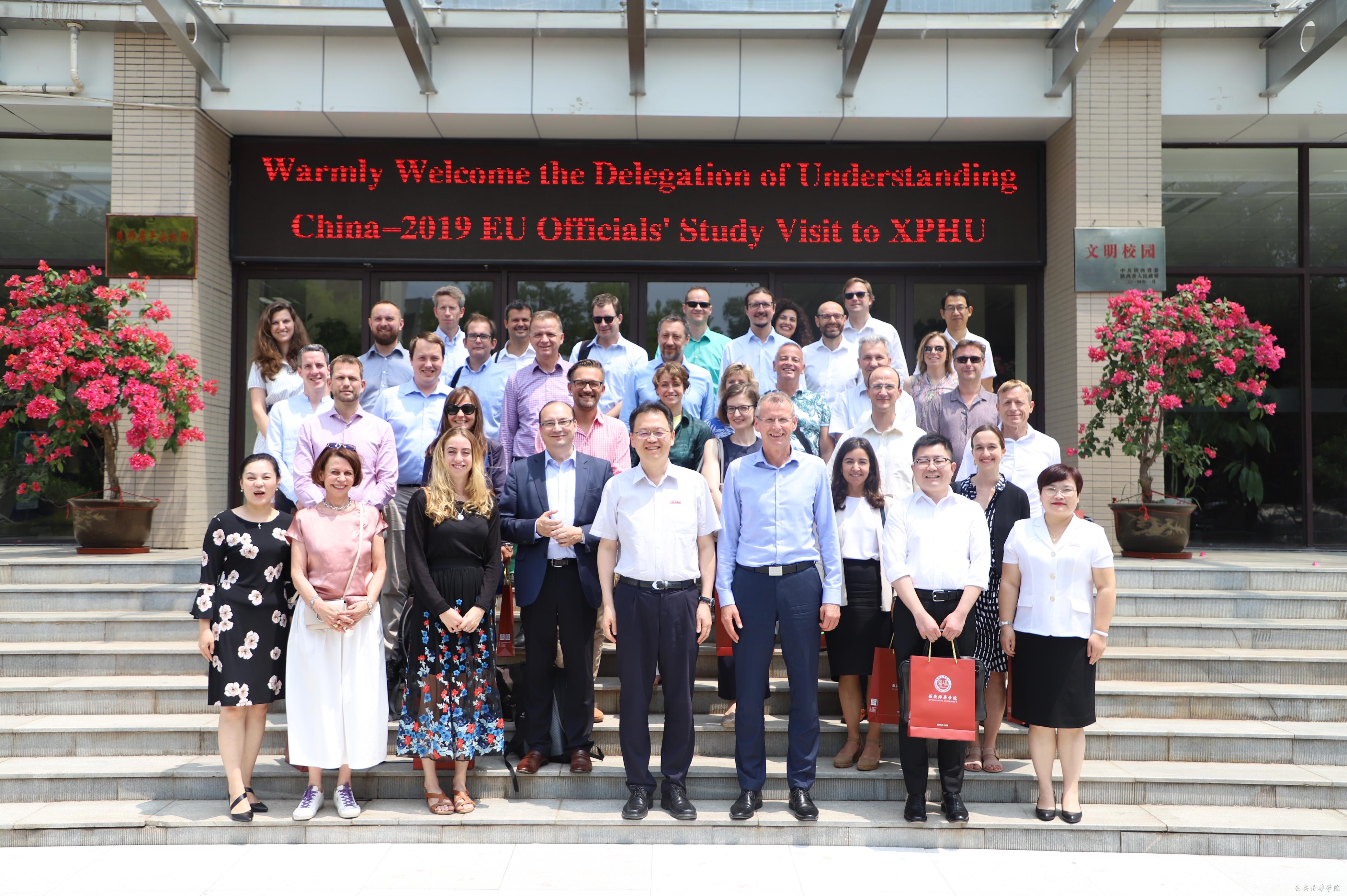 6月25日上午,2019“理解中国”欧盟官员来华研修团到我校交流访问。该研修团由欧盟委员会人力资源总司首席安全顾问Richard Sonnenschein、欧盟委员会通信总司处长Jan Michal、欧洲议会处长Walter Götz、欧盟委员会司法与消费者总司处长Pinuccia Contino、欧盟委员会反欺诈办公室首席主管Paul Alexander、欧盟委员会健康与食品安全总司副处长Eric Marin、欧盟委员会科研与创新总司国际关系官员Florent Jean Louis Bernard等33位欧盟高级官员组成,孔子学院汉学研究工作处项目官员王多利、北京语言大学项目老师李倩陪同到访。我校理事长姜波、校长助理秦海锋、国际交流中心主任王鹏、教务管理中心常务副主任唐学学亲切接待了来宾一行。