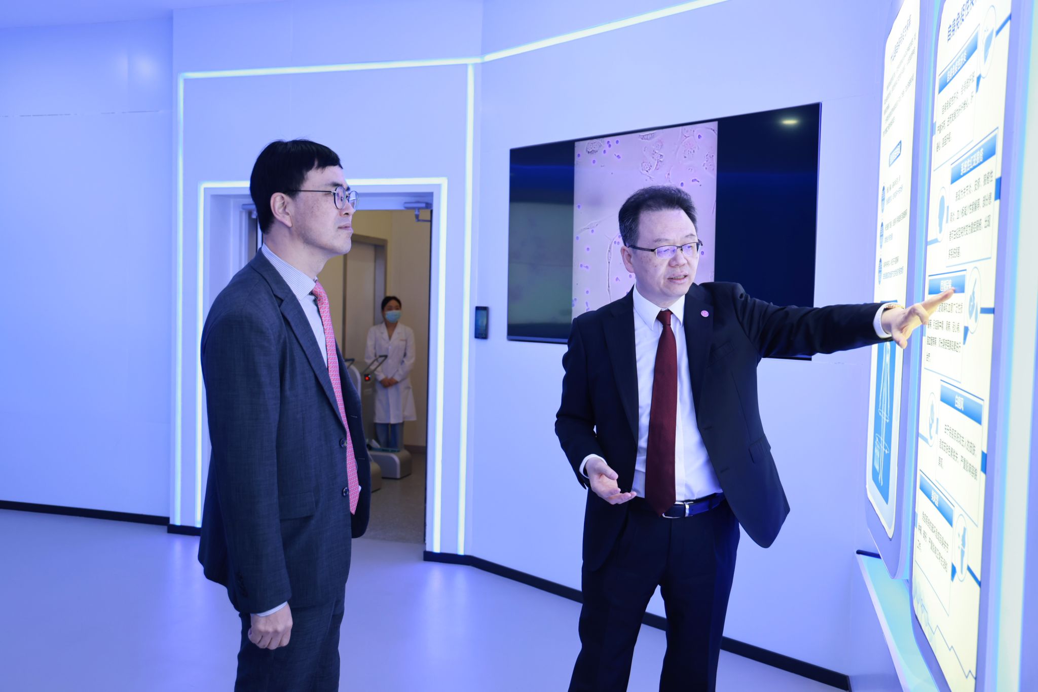 会后,姜波理事长及学校与会领导陪同来宾参观了学校校史馆、干细胞与再生医学中心、“一带一路”供应链金融研究院。