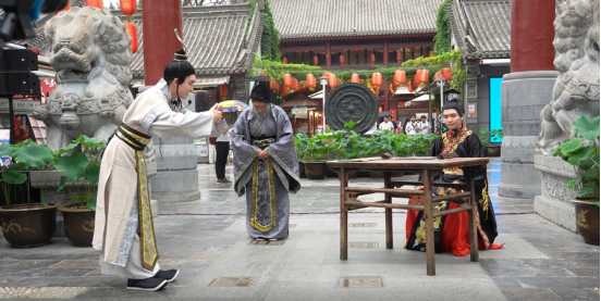 为积极迎合国家倡导的高校“产教融合,真学真做”培育原则,6月24日下午,我校师生在西安永兴坊实训基地进行新编戏剧展演。
