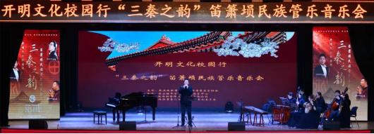 12月4日,由民进陕西省委会、陕西省音乐家协会主办,西安培华学院承办,陕西省音乐家协会笛箫专业委员会协办的高雅艺术进校园系列活动:开明文化校园行“三秦之韵——民族管乐音乐会”在我校大学生艺术活动中心举行。校长李映方,党委副书记、副校长姚文静及各学院师生代表500余人观看了演出。