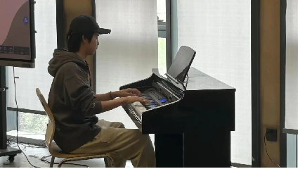 “首先从我个人来说,我在学校练习钢琴已经半年多了,其中收获是有很多的。比如在弹钢琴时的指法,识谱的能力等等,再从钢琴队的方面来说,作为代表来象征钢琴队来进行分享,也是十分难得的一次机会。我个人而言其实是有一些基础的,其实我练了这么长时间还是有一些问题的,比如说速度有一些慢,或者说指型指法上有一些问题,老师会帮我纠正过来,让我更好的发展,接下来我就弹奏一段曲子给大进行展示。”