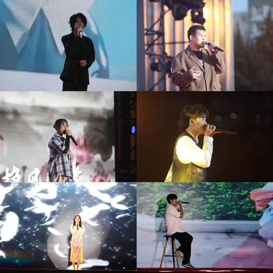 本次校园歌手大赛的决赛以艺术展演的形式呈现,节目丰富多彩。首先,由大学生艺术团电声乐队带来歌曲《反方向的钟》,将现场气氛烘托热烈。其次,大学生艺术团拉丁队的同学们用舞蹈《CHA CHA CHA》充分展示了我校大学生青春活力的精神面貌。艺术教育中心刘晗悦老师、齐堃老师献唱歌曲《水韵》,将六首带有“水”的民歌串烧在一起,致敬我国优秀经典民歌。西安音乐学院两位研究生作为嘉宾为大家演唱了歌曲《问春》,旋律优美,活泼轻快,展现了声乐艺术中灵动的花腔技术。最后,由往届歌手大赛获奖的选手为大家带来歌曲串烧《声生不息》,并为接下来比赛的选手加油打气。在一阵阵掌声与欢呼声中,正式进入到本届大赛的比赛环节。