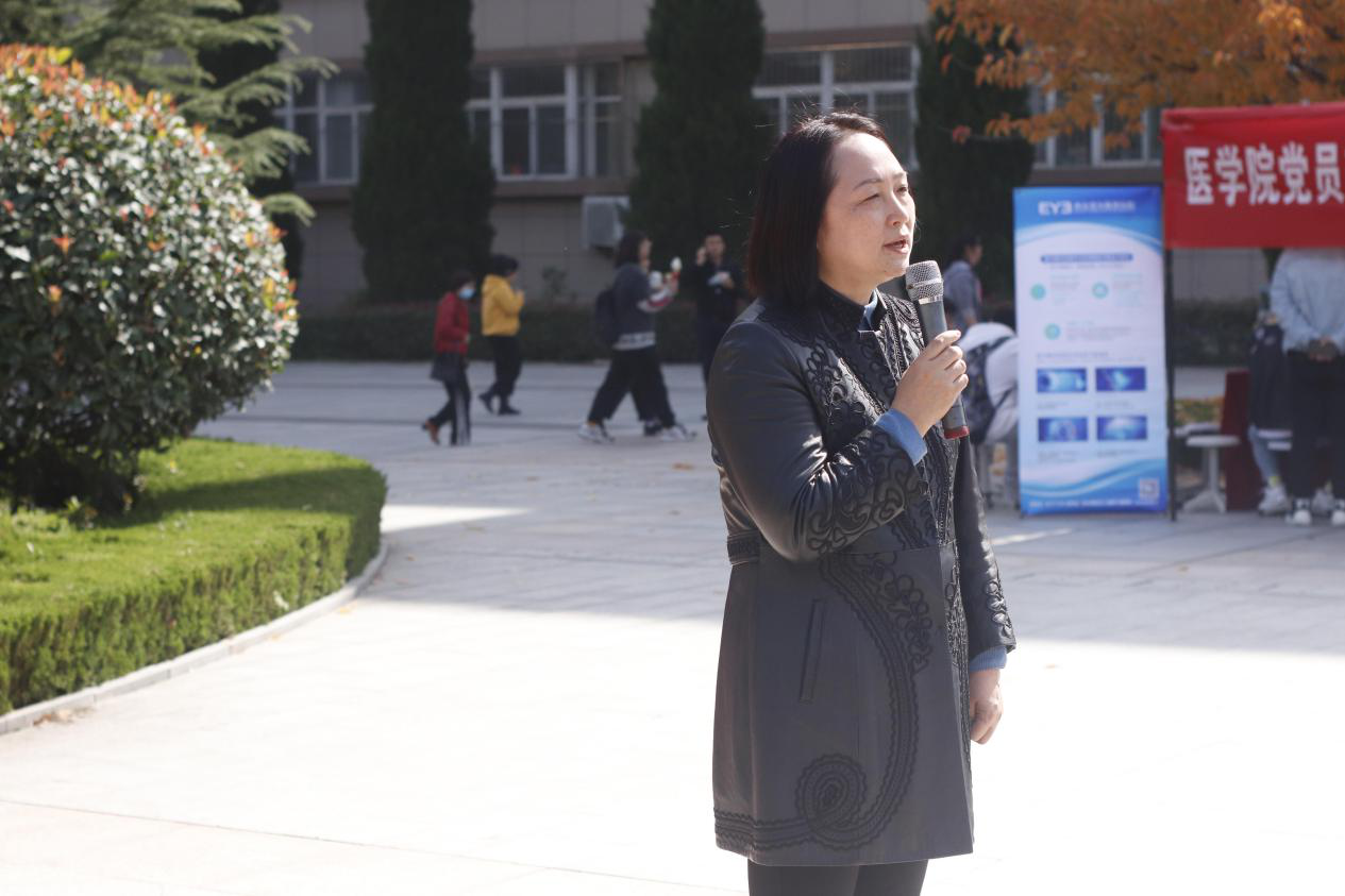 医学院党委书记王平安致辞,他表示本次活动的举办非常有意义,对于此类党员志愿服务活动应该多多举办。