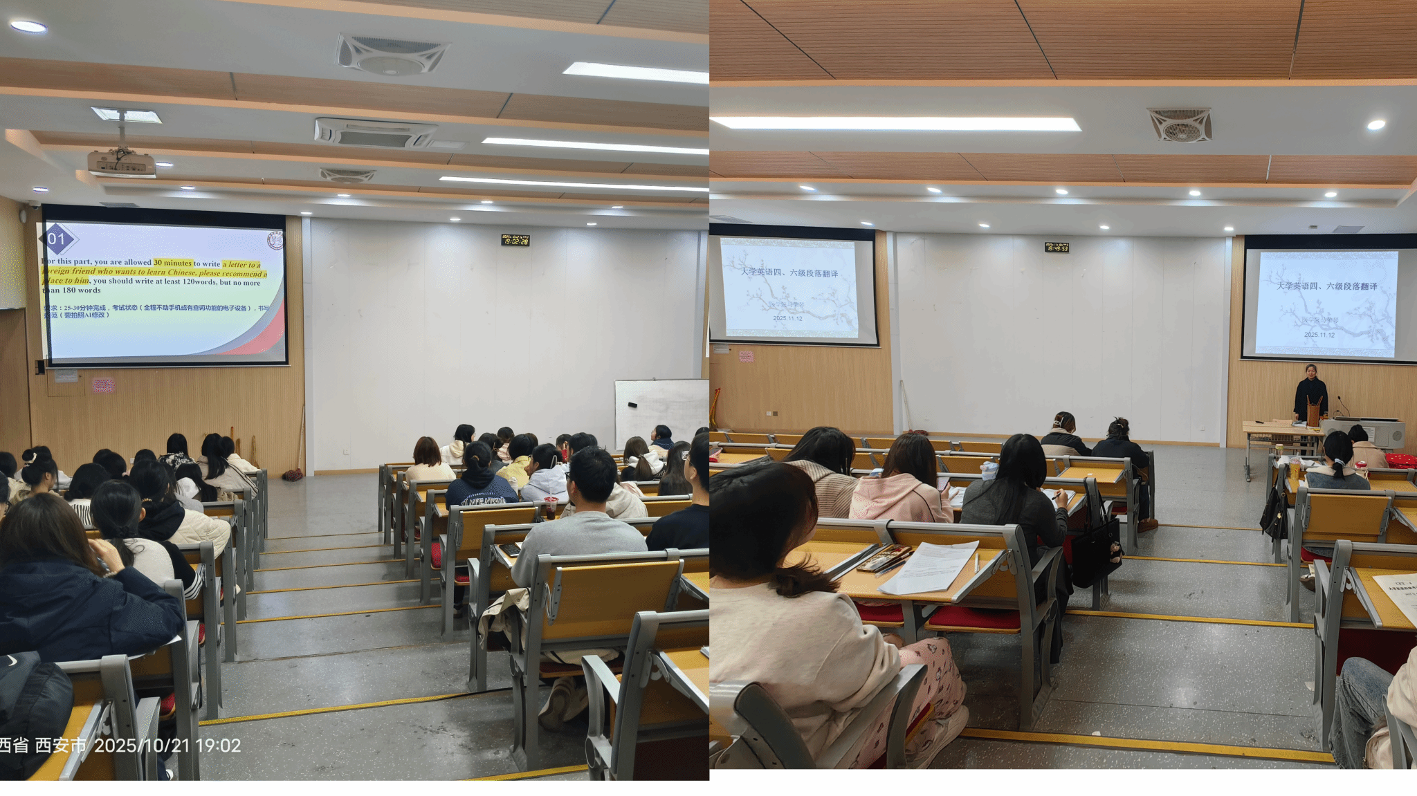 为深度推进我院大学英语教学改革,以学院“学风建设月”为契机,抓住学生四、六级备考关键期开展全方位过级精准辅导。创新搭建“四、六级研修室”专属学习阵地,为每周的研修日配备针对性研修资料,营造沉浸式、高效率学习环境;同步开设线下四、六级专项提升课程,邀请有多年四、六级阅卷经验的老师,聚焦答题技巧、时间规划、高频易错点解析及全真模拟训练等内容开展系统化教学,助力学生熟悉考试流程、适配考试节奏、增强应试信心,推动学生从知识积累向应试能力高效转化,切实提升四六级通过率与大学英语育人质量。