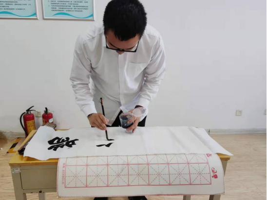 活动第三项,刘行同学、黄熙同学和张嘉驰同学进行精彩的才艺展示——“感恩的心”手语操;陆铮同学进行现场书法写作。表演得到了现场观众的一致好评。
