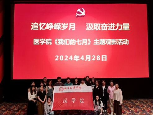 为深入学习贯彻习近平新时代中国特色社会主义思想和党的二十大精神,推动党史学习教育常态化长效化。4月28日下午,医学院党委组织党员师生前往电影院集中观看党史题材电影《我们的七月》,追忆峥嵘岁月,致敬英雄模范。