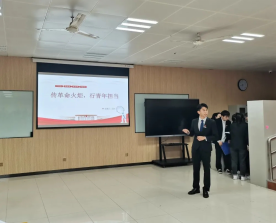 第一支团支部队伍的答辩选手上场,以PPT的形式展示了班级学习“红船精神”的成果。各个团支部答辩选手按序上场答辩,他们准备充足,感情饱满。同时计时员按照规则计时,评委们依照选手表现情况进行打分,答辩有条不紊地进行着。