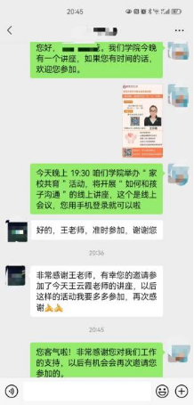 我校潜能发展中心历来高度重视家校共育,不断通过家长课堂、微文微课等形式为家长推送心理健康教育专业知识,积极与家长沟通,合力提升学生心理素养,实现家校共育。