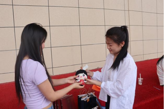 接下来是游戏二环节-歌词接力。首先三个组进行抽签,抽取他们的歌词,并且在组内进行歌词接力,然后把结果描述给NPC。此活动锻炼了同学们的合作能力,也让同学们之间的关系变得更紧密。