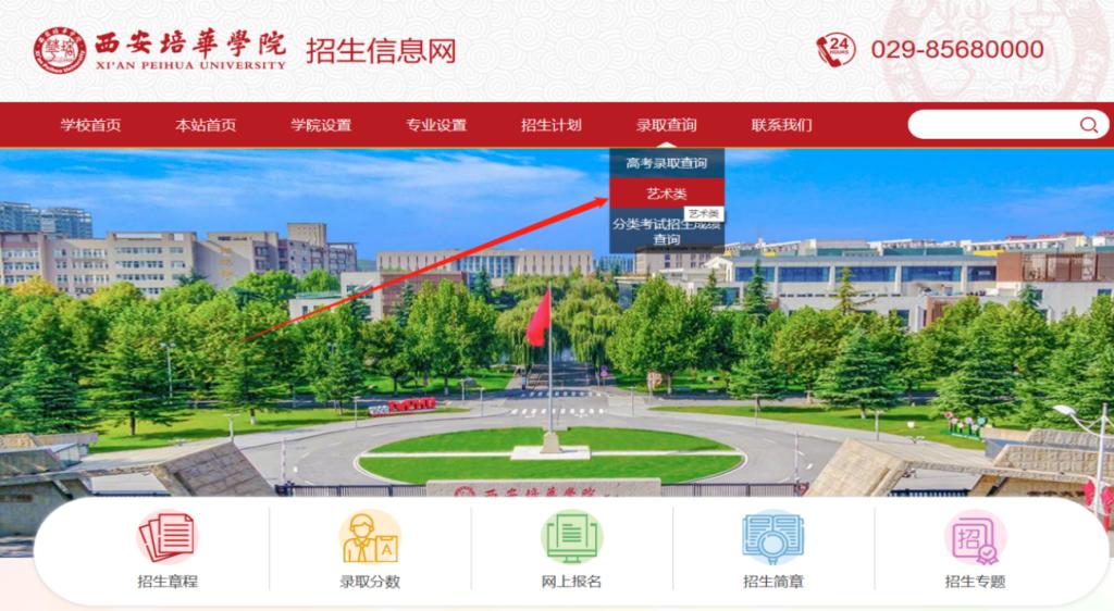 2.登录西安培华学院招生信息网:(http://www.peihua.edu.cn/zhaosheng/index.htm)→录取查询→艺术类,输入姓名、完整18位身份证号查询成绩。