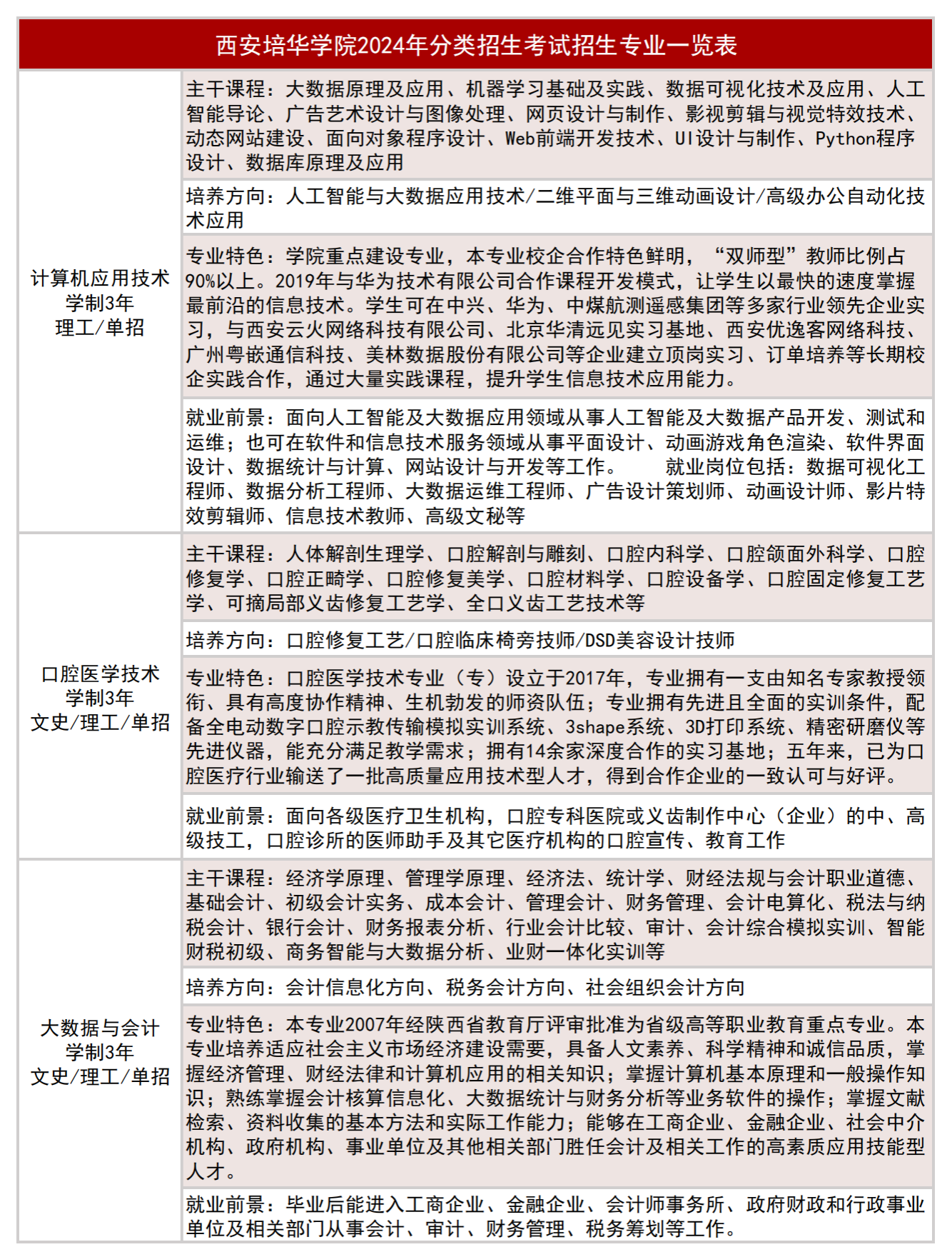 附:西安培华学院2024年分类招生考试招生专业一览表