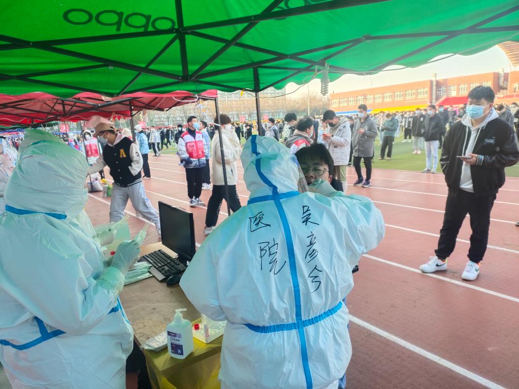 学生志愿者们也坚持奋战在抗击疫情的第一线,在凌晨的寒风中搭建核酸需要使用的帐篷,协助老师组织学生有序进行核酸检测,对浴室进行通风和消毒等等,虽然平时的他们略显稚嫩,但此刻身穿志愿者工作服的他们却坚定而沉着,彰显了青年学子的使命和担当。