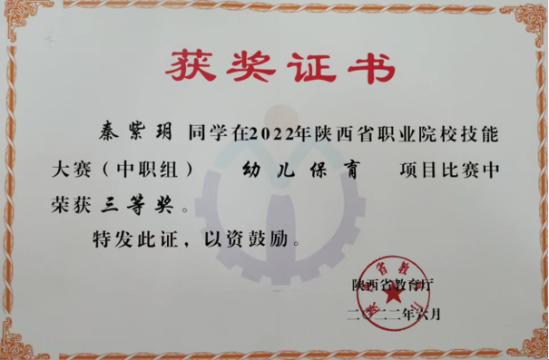 金秋九月,喜报频传,辛勤的耕耘终将迎来丰收。我校秦紫玥同学荣获2022年陕西省职业学校技能大赛三等奖,彰显了我校学子风采。