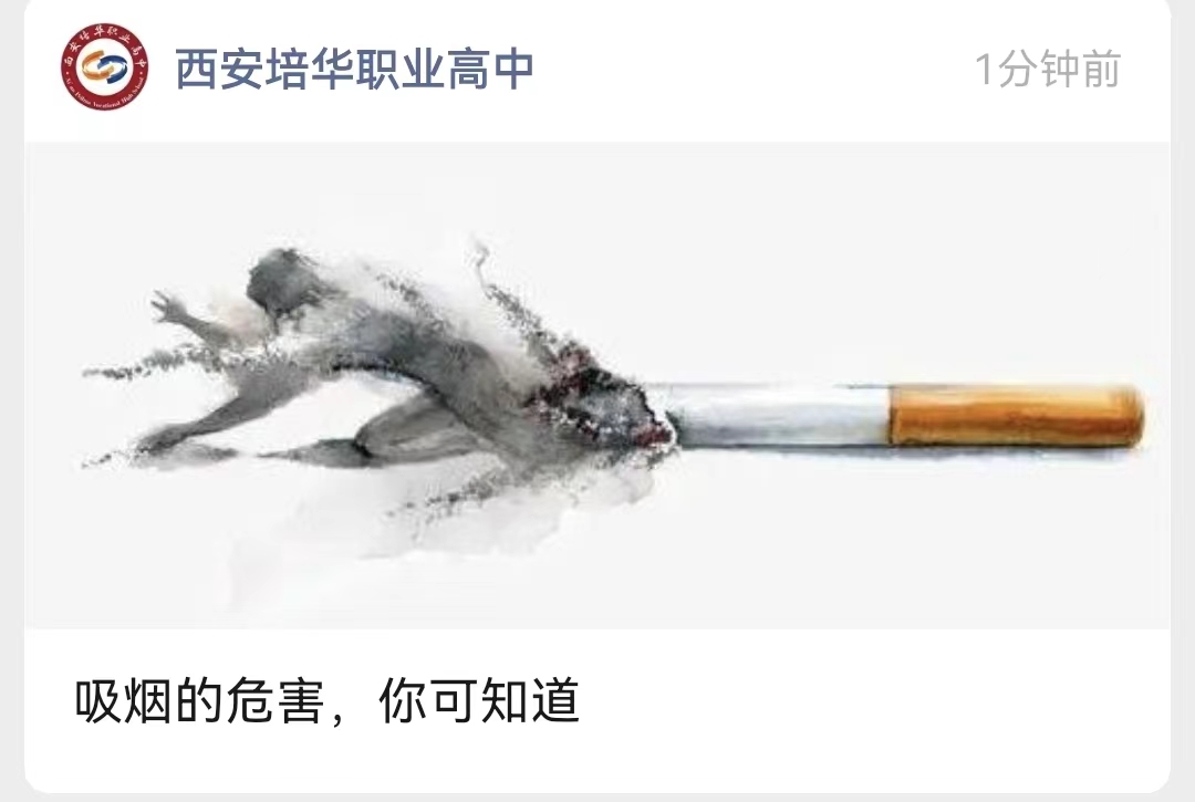 我校利用官方网站和微信公众号发布吸烟有害健康的相关文章,利用网络的便利性和实效性大大提高本次活动的宣传效率,拓宽了宣传途径,加强了氛围营造的力度,让所有学生都知晓本次禁烟教育活动,自觉成为校园文明行为的宣传员。