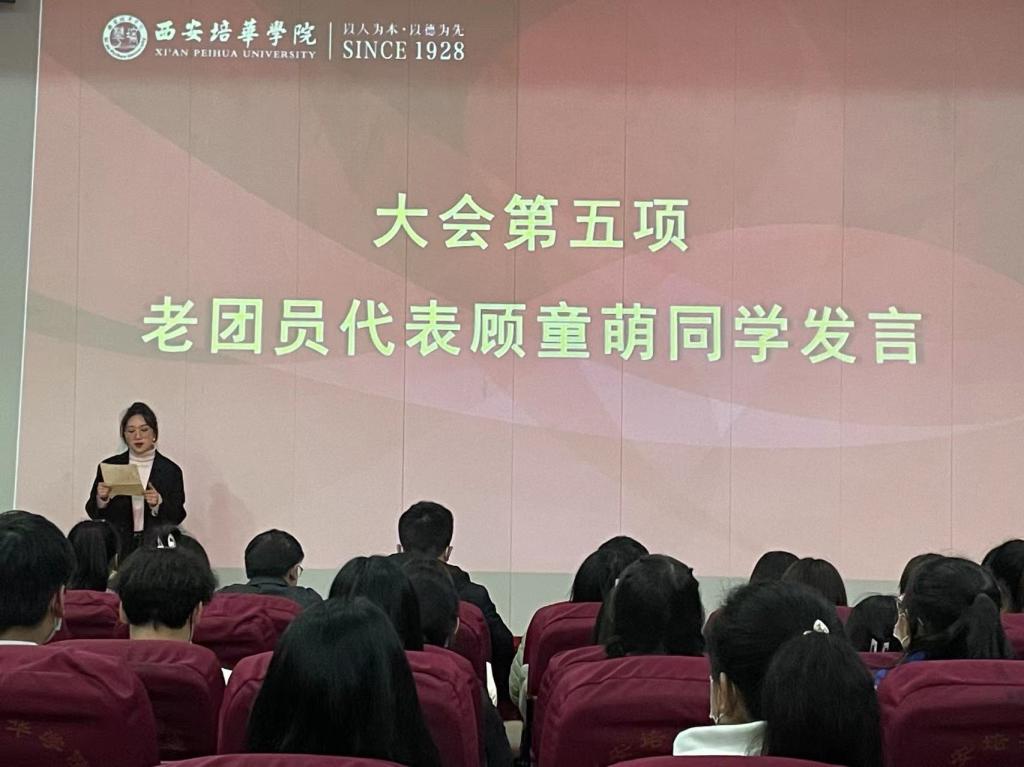 老团员代表顾童萌同学分享了自己开展团学工作的心得和感悟,鼓励新团员们通过不断努力实现自我价值,发挥好榜样引领示范作用,严格按照校团委的要求开展团学活动,为学校各项工作的开展奠定良好基础。