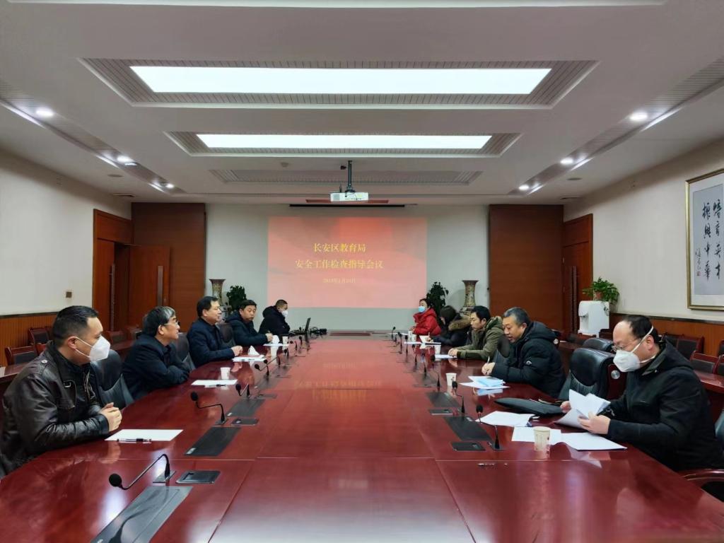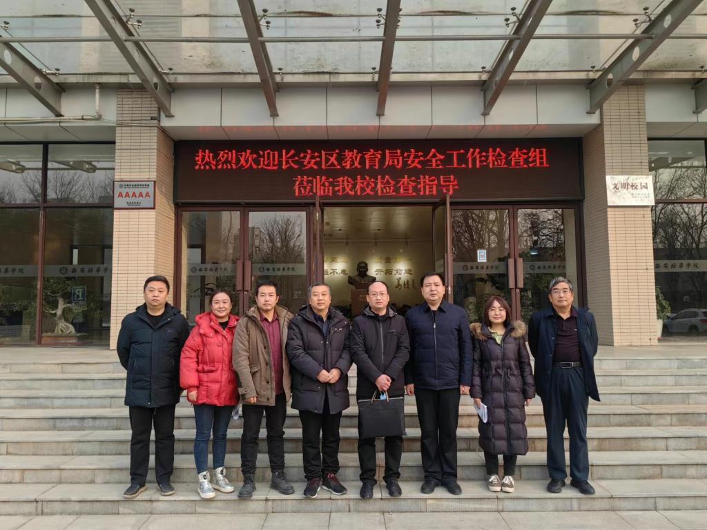 根据长安区教育局《关于2022年度校园安全和校(园)长安全工作责任制考核工作的通知》文件精神,2023年1月10日,长安区教育局安全工作检查组领导李航、李战锋等一行五人莅临我校检查指导校园安全工作,我校校长席小武、党支部书记罗永辉、副校长雷保民及相关处室负责人参加了会议。