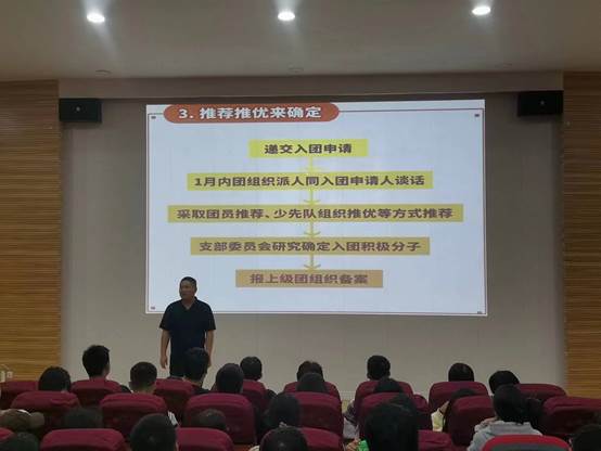 蔡国强老师带来主题团课教育,讲解了团的组织建设和规章制度,明确了共青团员的义务和责任,详细阐述了发展团员的标准和流程,指导新生使用智慧团建系统和开展青年大学习,引导学生树立远大抱负,培养爱党爱校情怀。